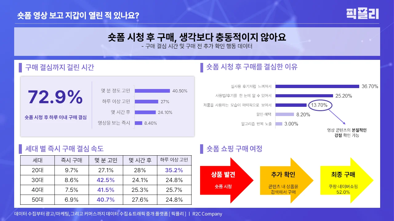 72.9%의 소비자가 당일 구매를 하게 만드는 숏폼의 구매 촉진 효과