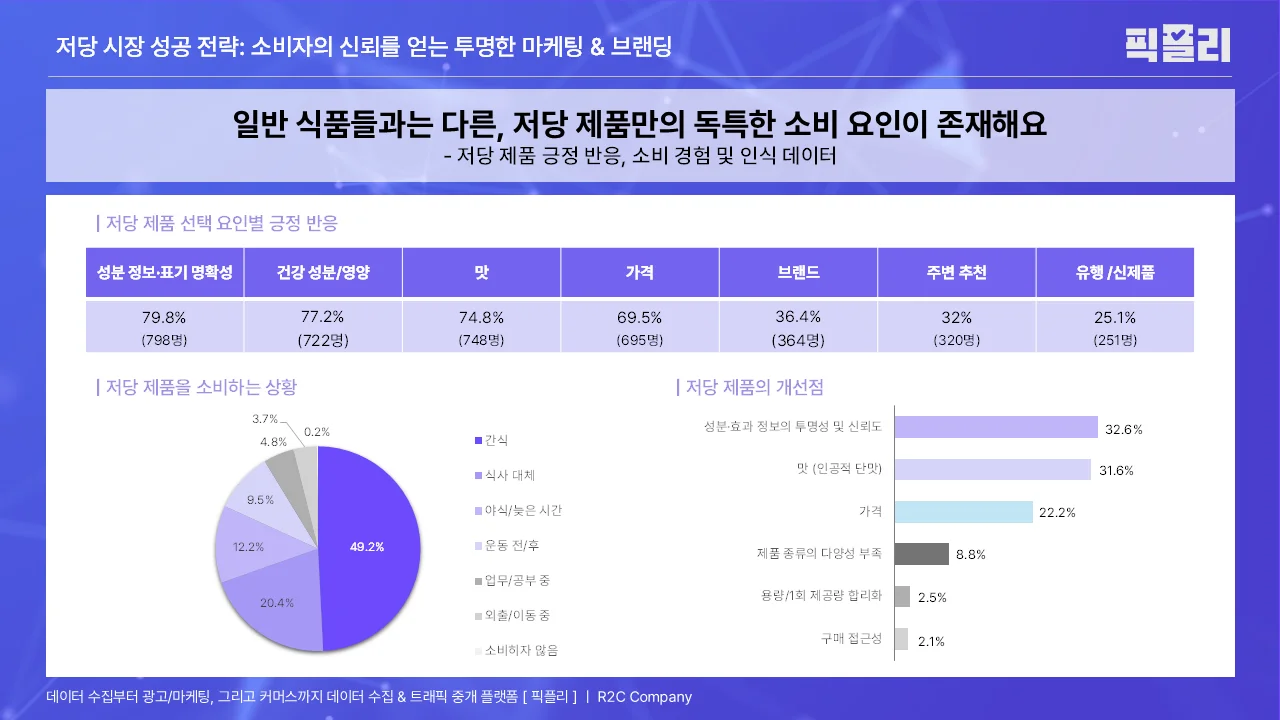 저당 시장 공략법: ‘성분 정보’를 투명하고 직관적으로 전달하고 ‘맛’과 ‘가격’ 잡기